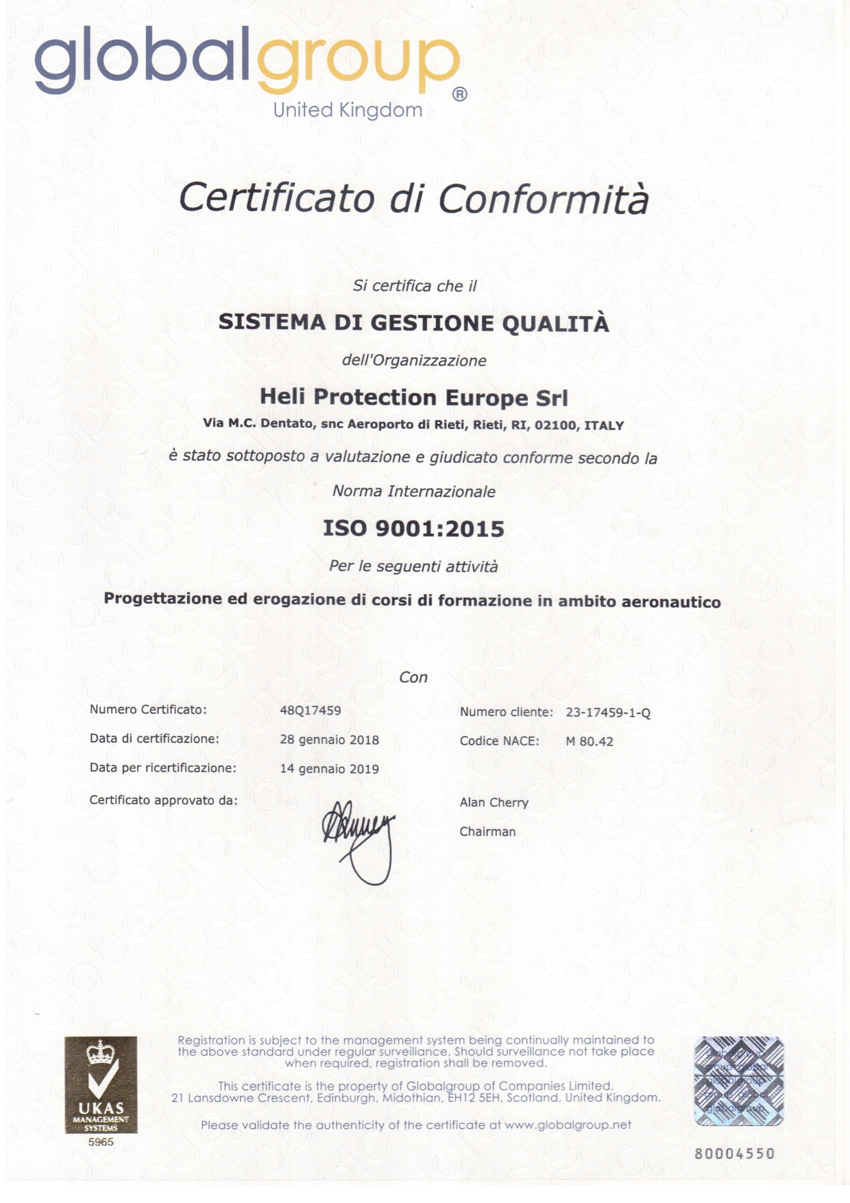 • Certificazione ISO