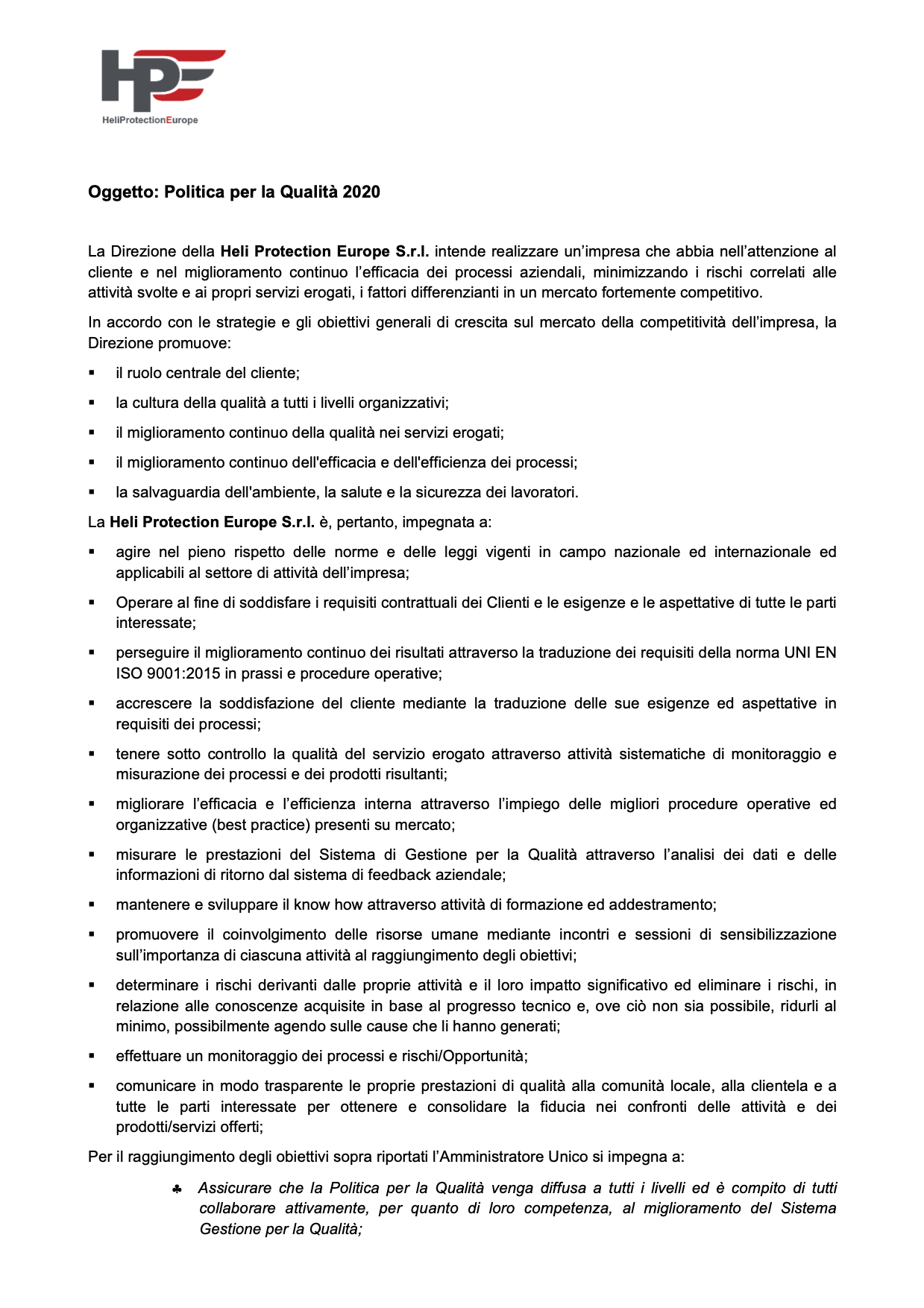 Politica per la Qualità_HPE_2020